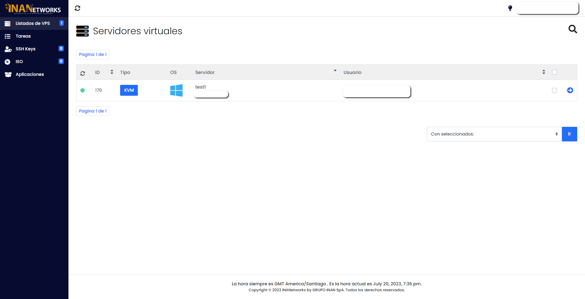 - Seleccione su servidor VPS