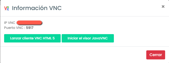 - Luego en la esquina superior derecha presione en "VNC"