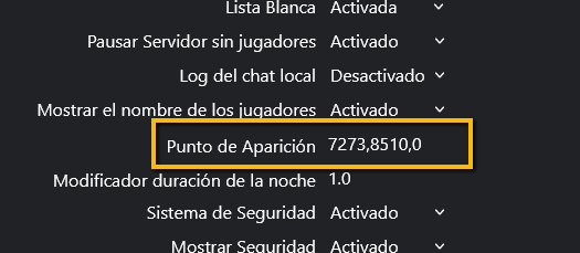 *El 0 en las coordenadas es la altura, por lo cuál, si deseamos aparecer a nivel de suelo, no modificamos ese numero. - Guardamos el archivo e iniciamos nuestro servidor.