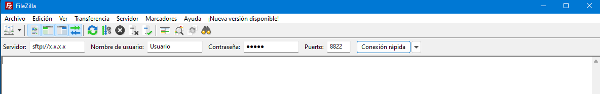 3. Abra Filezilla y pegue la IP de SFTP en el campo Host, y para los campos Nombre de usuario y Contraseña, use el mismo nombre de usuario y contraseña que usa para iniciar sesión en su panel de control.
