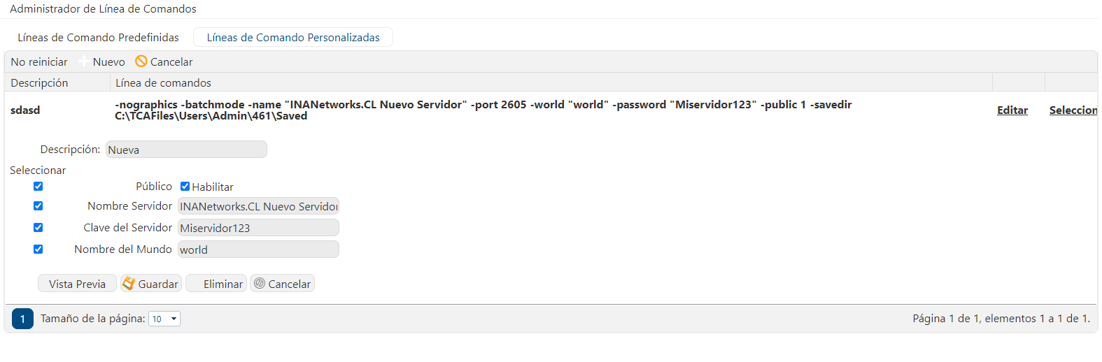 - Completamos el campo "Nombre servidor" y "Clave Servidor". NOTA: La clave tiene que tener mínimo 5 caracteres.